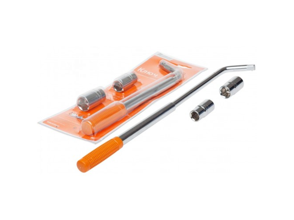 Балонный ключ играет роль незаменимого инструмента как для бытового, так и для профессионального обслуживания транспортных средств. Прочность на долгое время обеспечивается составом балонного ключа из инструментальной стали. Прорезиненная рукоятка фирменного оранжевого цвета избавит от дискомфорта во время долгосрочного использования инструмента и снизит нагрузку, оказываемую на руки автомобилиста. В комплекте для ключа представлены головки на 17*19 и 21*23 мм.