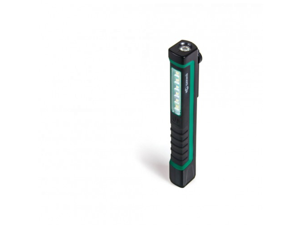 Лампа LED карманная Описание Любому профессионалу автомеханику и автолюбителю необходим компактный источник светa под рукой. GL-B52 это именно такое решение! Его можно использовать как временную подсветку и как фонарик. В конструкцию устройства входят два магнита и зажим для ремня - закрепить источник света будет не проблема. Словом, весьма эргономичная и удобная вещь. - Внимание! Светодиодная лента допускает повреждение одного из элементов без выхода из строя всей ленты. Это может произойти вследствие удара или другого механического воздействия. Физическое повреждение светодиодов приводит к аннулированию гарантии. Прочный корпус Высокопрочный АБС-пластик, линза из поликарбоната, прорезиненная ручка Дополнительный свет Один дополнительный ультраяркий светодиод сверху, для труднодоступных мест, диаметром 5мм Пылевлагозащита IP45: Защита от грязи / Защита от струй воды