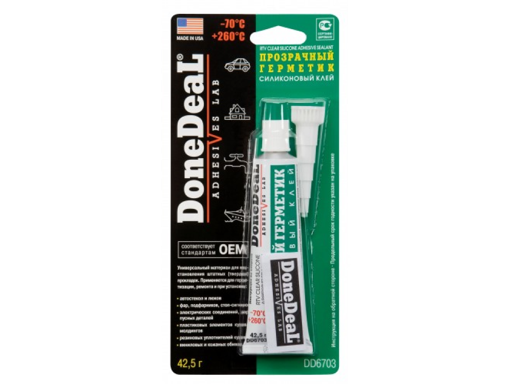 Прозрачный, водонепроницаемый силиконовый герметик-клей широкого спектра использования.Заполняет пустоты и неплотности.Используется для установки, ремонта и герметизации автомобильных стекол, люков, фар, подфарников, стоп-сигналов, электрических соединений, осветительных приборов, внутренних отделочных панелей, приборных досок корпусных деталей, пластиковых элементов кузова, молдингов, резиновых уплотнителей кузова.Благодаря высокой влагоустойчивости и рабочему диапазону температур от -70°C до +260°C может применяться снаружи, внутри и в подкапотном пространстве автомобиля.Универсальный материал для замены штатных (твердых) прокладок.Выдерживает ударные и вибрационные нагрузки.Устойчив к действию агрессивных сред и автомобильных технических жидкостей.