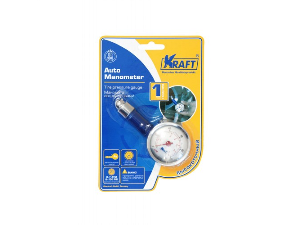 Металический корпус. 0-100PSI(7ATM). Аналоговая шкала. Кнопка сброса показаний.