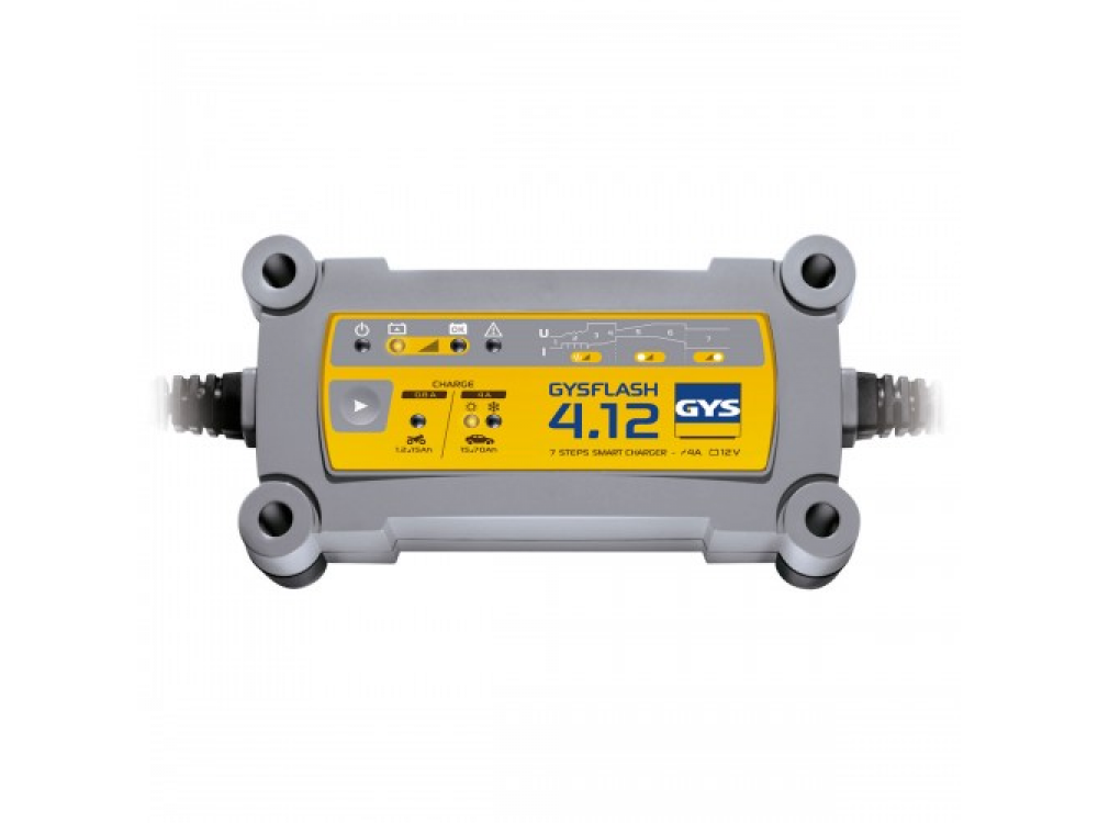Зарядное устройство GYSflash 4.12 применяется для зарядки АКБ 12В хэтчбеков, мотоциклов, гидроциклов, картов или газонокосилок. GYSflash 4.12 имеет умную кривую зарядки в 7 этапов, обеспечивающую оптимальную зарядку в 2 раза быстрее, чем традиционное зарядное устройство 4А. Что может GYSflash 4.12 - Разработан для аккумуляторов 12 В (кислотно-свинцовых) емкостью от 1.2 до 70 Aч, он также позволяет совершать подпитку до 130 Aч. - Зимний режим / Аккумуляторы AGM: - Специфическая зарядка в случае сильных заморозков (ниже 5°C). - Оптимальная зарядка аккумуляторов Start & Stop (AGM). - Совместим с переходником для прикуривателя, АКБ может заряжаться через разъем 12В автомобиля (кабель поставляется опционно). - Оптимизированная подпитка: зарядное устройство может оставаться подключенным к АКБ как угодно долго во время зимовки. Функция «Auto Restart» в случае отключения электричества. Аппарат при этом запоминает настройки. Особенности - Противоискровая защита. Бережет бортовую электронику: защита против коротких замыканий, инверсий полярности и перегрузки. - Автоматическое выключение в случае короткого замыкания или если АКБ отсоединена. - Встроенный температурный датчик, позволяющий избегать перегрева встроенной электроники. - Упрощенный интерфейс, чтобы избежать ошибочных действий. - Компактный дизайн, легкий и переносной. - Соединение с помощью быстросъемных и герметичных коннекторов. - Полностью герметический корпус против пыли и жидкости (IP65). - Возможно стенное крепление. 100% автоматическая зарядка в 7 этапов - Анализ - Восстановление - Тестирование - Десульфатация - Зарядка - Поглощение - Подпитка Технические характеристики Наименование Значение Напряжение сети 220 В - 240 В, 50/60 Hz Максимальный зарядный ток 4 А Зарядка аккумуляторов 1.2-70 Ач Подпитка аккумуляторов 1.2-130 Ач Напряжение заряда/пуска 12 В Класс защиты IP65 Потребляемая мощность 70 Вт Габаритные размеры 195х365х70 мм Вес 0, 69 кг. Комплектация - Устройство GYSflash 4.12 - Зажимы (45 см) - Наконечники - M6 (45 см) - Коннектор «папа» (145 см) - Упаковка